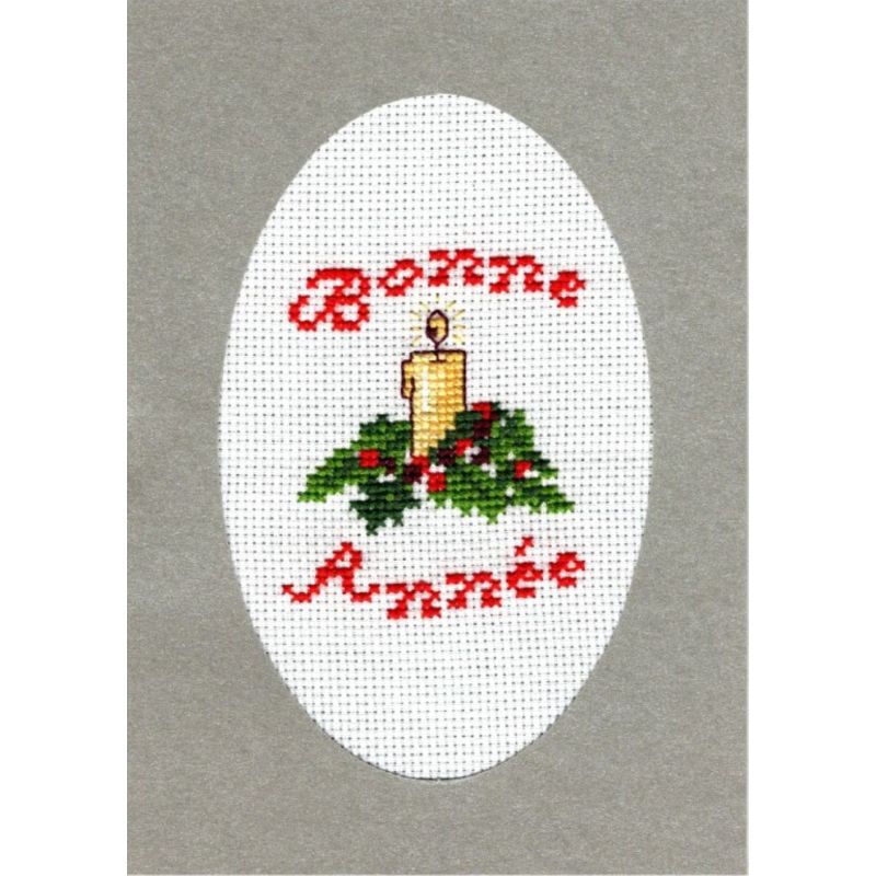 Kit Carte de Voeux Bougie Bonne Année Coloris Argent Point de Croix Comptés