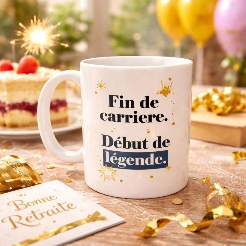 Un mug inspirant « Fin de carrière, début de légende » : le cadeau parfait pour célébrer un départ en retraite avec élégance et émotion.