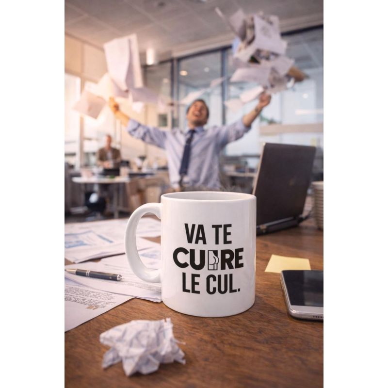 Mug humoristique avec message décalé « Va te faire cuire le cul », parfait pour offrir un cadeau drôle et original à quelqu’un qui aime l’humour cash.