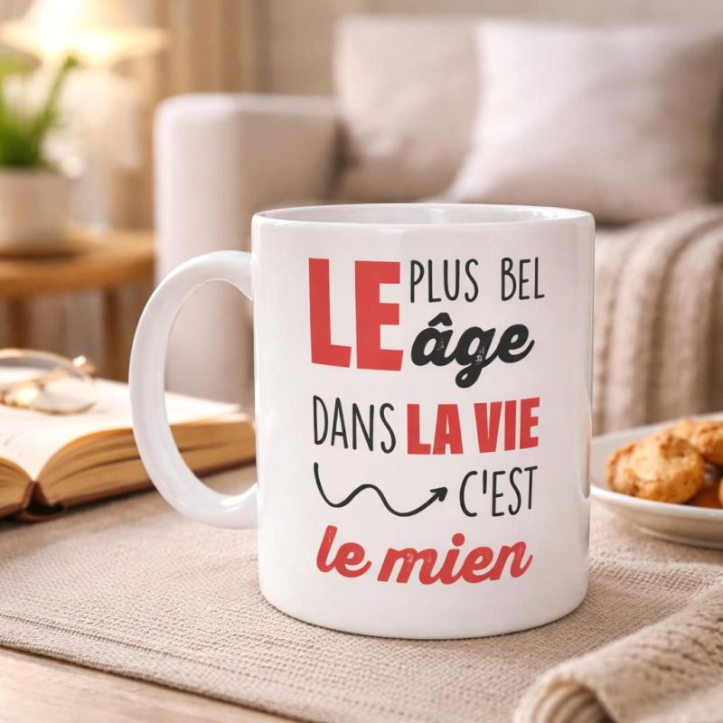 Et si le plus bel âge, c'était tout simplement le vôtre ? Avec le mug “Le plus bel âge dans la vie, c'est le mien”, le message est clair : confiance, autodérision et bonne humeur sont au rendez-vous.