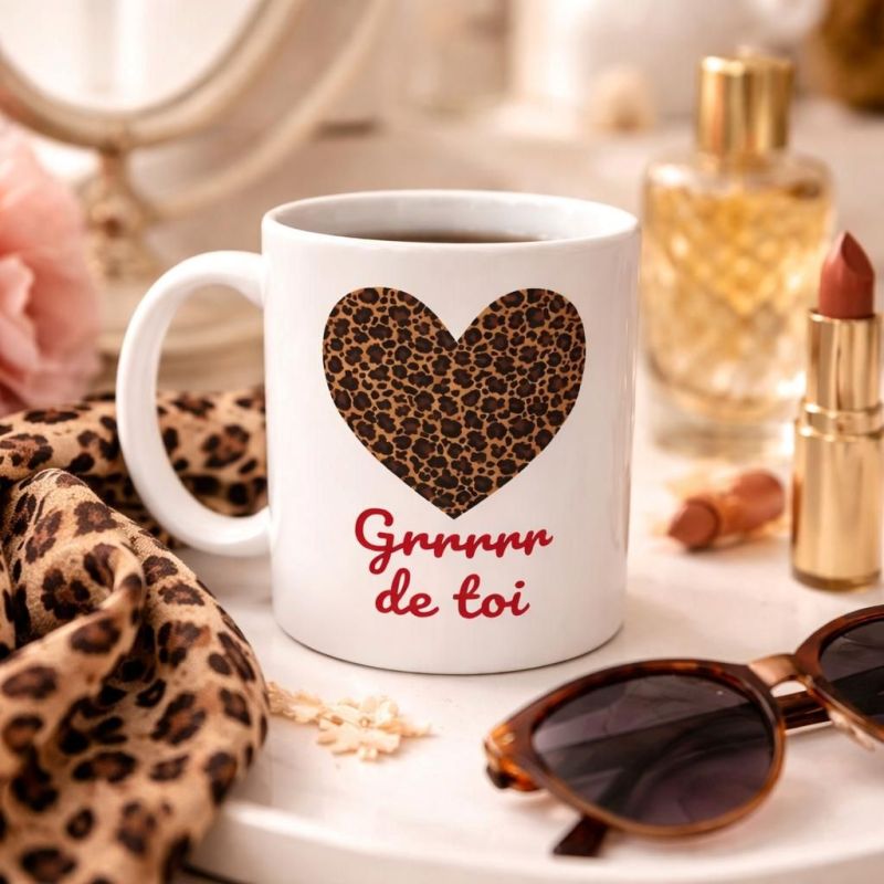 Un cœur léopard et un “Grrr de toi” : le combo parfait pour une pause café pleine d'amour … et de caractère !