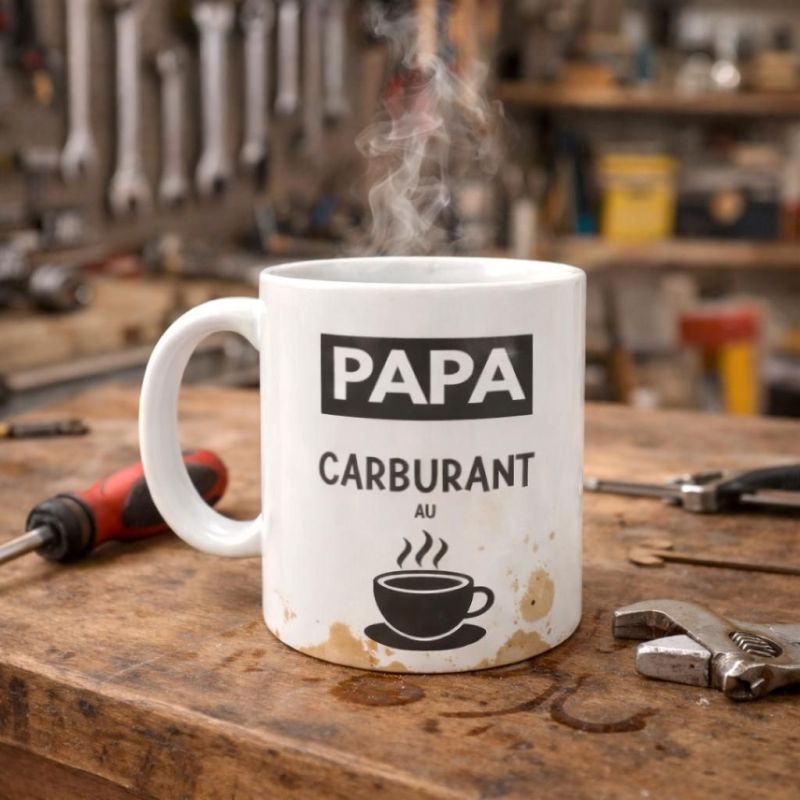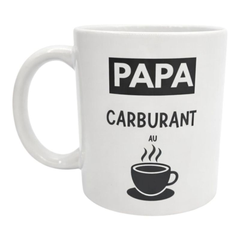 Certains fonctionnent à l'énergie … d'autres au café ! Avec le mug “Papa carburant au café”, le message est clair : avant sa première tasse, mieux vaut ne pas trop en demander