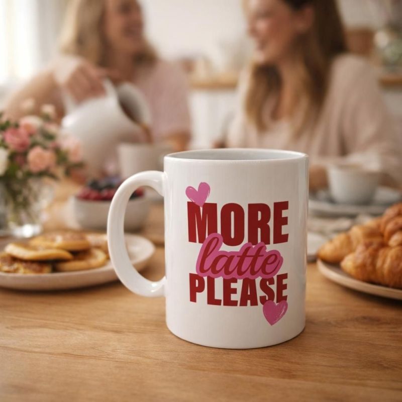 Que ce soit pour Noël, un anniversaire, la Saint-Valentin ou simplement pour faire plaisir à une amie, une collègue ou à soi-même, ce mug est un cadeau parfait pour toutes celles qui aiment les boissons chaudes et les ambiances cosy. Le message More latte please évoque immédiatement ces moments où l'on voudrait prolonger la pause, savourer encore une gorgée et profiter d'un instant rien qu'à soi.