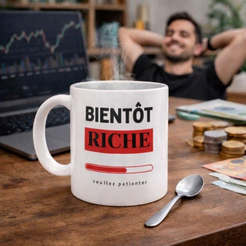 Avec ce mug Bientôt riche, chaque pause devient une dose d'humour et de motivation, parfaite pour avancer avec le sourire et garder ses objectifs en tête.