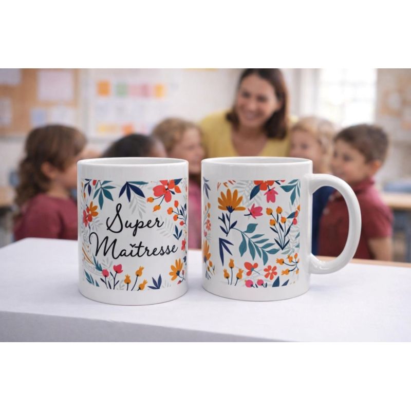 Le mug Super Maîtresse avec ses jolies fleurs est le cadeau parfait pour dire merci avec le cœur.